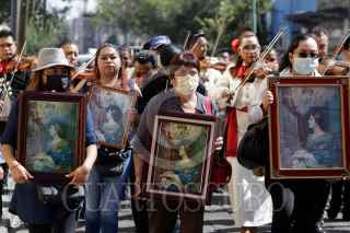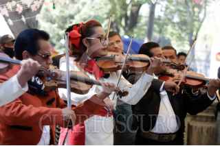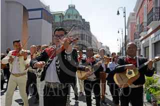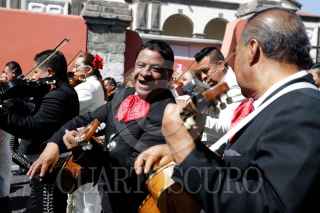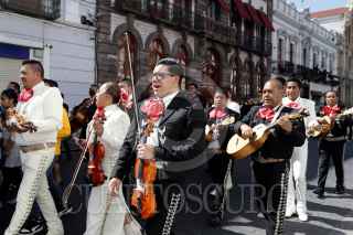 PUEBLA, PUEBLA, 22NOVIEMBRE2022.- Mariachis poblanos salieron a tocar por las calles del centro histórico para celebrar a Santa Cecilia, patrona de los músicos, en su día. FOTO: MIREYA NOVO/CUARTOSCURO.COM