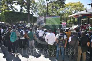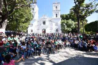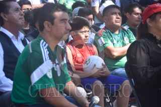CHILPANCINGO, GUERRERO, 22NOVIEMBRE2022.- Chilpancingueños, entre jóvenes que se saltaron sus clases, trabajadores que dejaron de lado sus labores y público en general, disfrutaron del primer encuentro que la Selección mexicana de fútbol sostuvieron contra el selectivo de Polonia dentro de la primera ronda del Mundial que se realiza en Qatar. Esta función, se llevó a cabo frente a la catedral de 'La Asunción de María', donde miembros del Comité Ejecutivo Municipal del Partido Revolucionario Institucional (PRI), instaló una pantalla y un sonido para que el partido fuera presenciado por los ciudadanos. Además de esto, repartieron balones con el logotipo del partido. FOTO: DASSAEV TÉLLEZ ADAME/CUARTOSCURO.COM
