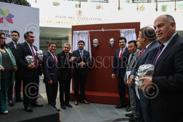 CIUDAD DE 23NOVIEMBRE2022.- El senador José Ramón Enrique Herrera y Francisco Villa Campa nieto de Francisco Villa encabezaron la develación de las máscaras mortuorias de los generales Francisco Villa y Emiliano Zapata en la Cámara de senadores acompañaron los diputados de Chile Mónica Arce, Cristian Aralla, Sergio Bobadilla y Miguel Ángel Calisto. FOTO: ANDREA MURCIA /CUARTOSCURO.COM