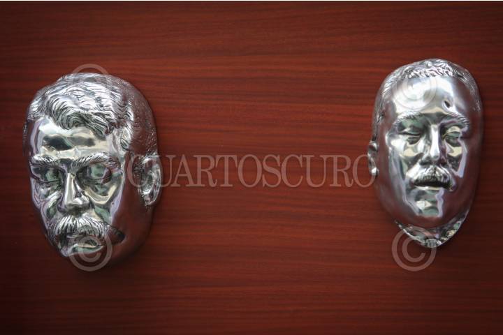 CIUDAD DE 23NOVIEMBRE2022.- El senador José Ramón Enrique Herrera y Francisco Villa Campa nieto de Francisco Villa encabezaron la develación de las máscaras mortuorias de los generales Francisco Villa y Emiliano Zapata en la Cámara de senadores acompañaron los diputados de Chile Mónica Arce, Cristian Aralla, Sergio Bobadilla y Miguel Ángel Calisto. FOTO: ANDREA MURCIA /CUARTOSCURO.COM