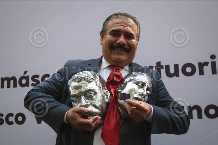 CIUDAD DE 23NOVIEMBRE2022.- El senador José Ramón Enrique Herrera y Francisco Villa Campa nieto de Francisco Villa encabezaron la develación de las máscaras mortuorias de los generales Francisco Villa y Emiliano Zapata en la Cámara de senadores acompañaron los diputados de Chile Mónica Arce, Cristian Aralla, Sergio Bobadilla y Miguel Ángel Calisto. FOTO: ANDREA MURCIA /CUARTOSCURO.COM