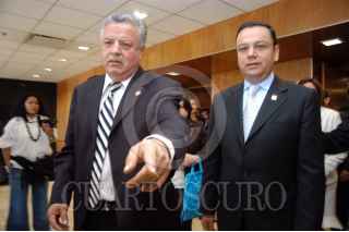 MÉXICO D.F. 27FEBRERO2007.- El diputado Jorge Zermeño del PAN presidente de la mesa directiva en la cámara y Germán Matínez Cazares secretario de la función pública, a su salida del pronunciamiento de controladores, esto en el Palacio Legislativo. FOTO: GUILLERMO PEREA/CUARTOSCURO.COM