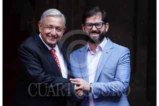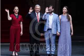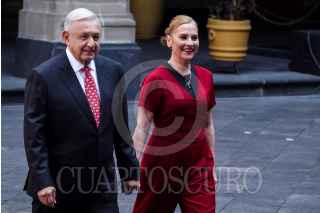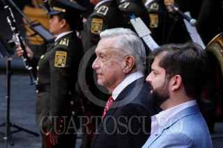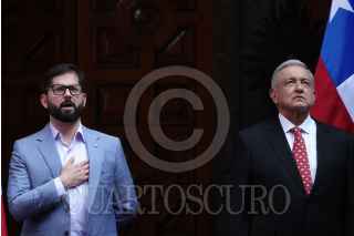 CIUDAD DE MÉXICO, 23NOVIEMBRE2022- Andrés Manuel López Obrador, presidente de México y la investigadora y primera dama, Beatriz Gutiérrez Müller, encabezaron el recibimiento de Gabriel Boric Font, presidente de la República de Chile, y de la antropóloga y primera dama de Chile, Irina Karamanos, a Palacio Nacional. FOTO: GALO CAÑAS/CUARTOSCURO.COM