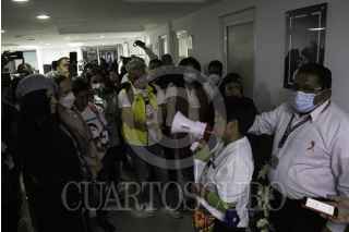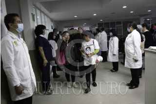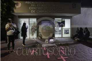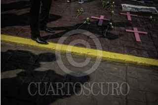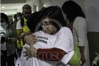 CHIMALHUACAN, ESTADO DE MÉXICO, 23NOVIEMBRE2022.- Lidia Florencio y Laura Florencio madre y hermana de Diana joven víctima de feminicidio en 2017, Dilcya García Espinoza, fiscal Central para la atención de Delitos vinculados a la violencia y Martha Hilda, titular de la Secretaria de mujeres del Estado de México durante la colocación de una placa en el Semefo de la Fiscalía de Chimalhuacán como parte de las medidas de reparación por la mala diligencia que realizó esta instancia en el caso de Diana Velázquez Florencio. FOTO: ANDREA MURCIA /CUARTOSCURO.COM