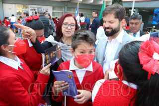 CIUDAD DE MÉXICO, 24NOVIEMBRE2022.- La secretaria de Educación Pública, Leticia Ramírez Amaya, y el presidente de la República de Chile, Gabriel Boric Font, visitaron la Escuela Primaria “Gabriela Mistral” en la alcaldía Coyoacán, de la Ciudad de México, la cual fue incorporada al programa Escuelas Chile para la capacitación y el fortalecimiento docente. Durante el acto, la titular de Educación afirmó que el Gobierno de México, encabezado por el presidente Andrés Manuel López Obrador, trabaja para que la educación esté en el centro de la transformación, pues sin ella no hay cambio real, ni ahora, ni hacia adelante. FOTO: SEP/CUARTOSCURO.COM