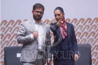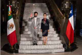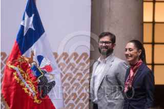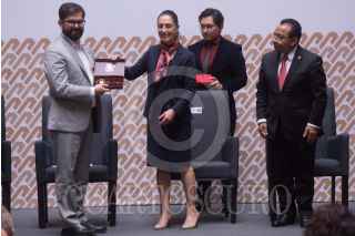 CIUDAD DE MÉXICO, 24NOVIEMBRE2022.- Claudia Sheinbaum Pardo, jefa de Gobierno, encabezó la entrega el reconocimiento como Huésped Distinguido a Gabriel Boric Font, Presidente de la República de Chile. Estuvieron presentes: Beatriz Sánchez, Embajadora de Chile en México; Alicia Bárcenas Ibarra, Embajadora de México en Chile; Fausto Manuel Zamorano Esparza, presidente del Congreso de la Ciudad de México, II Legislatura, y Rafael Guerra Álvarez, magistrado Presidente del Tribunal Superior de Justicia de la Ciudad de México. FOTO: MARIO JASSO/CUARTOSCURO.COM