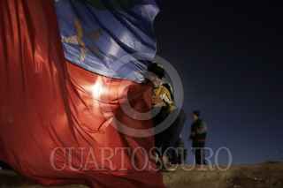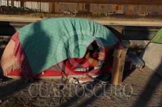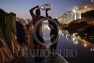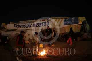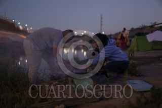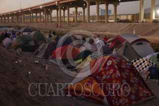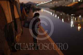 CIUDAD JUÁREZ, 25NOVIEMBRE2022.-Al borde del Río Bravo, ubicado en Ciudad Juárez, en la frontera con Estados Unidos, miles de personas migrantes venezolanas expulsadas a México, instalaron un campamento improvisado con casas de acampar en forma de protesta para presionar al Gobierno de Joe Biden luego de que fueron incluidos en el Título 42 que les impide cruzar y realizar el trámite para buscar asilo. En el campamento hay familias completas, niños, mujeres embarazadas y perros, algunas organizaciones religiosas y ciudadanos de Juárez llevan comida, ropa y cobijas, ya que en el campamento carece de servicios esenciales y durante la noche encienden fogatas con las que intentan mitigar las bajas temperaturas. Un juez federal en Estado Unidos ha bloqueado la aplicación del Título 42 por considerarlo ilegal y los migrantes no serán expulsados inmediatamente y podrán solicitar asilo, pero será hasta el 21 de diciembre el periodo que implementó el juez para poner fin a la medida de salud que inició en el año 2020 para evitar la propagación del COVID-19. FOTO: AMELIA G. PIZAÑA/ CUARTOSCURO.COM
