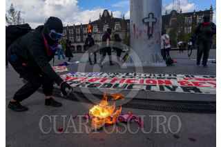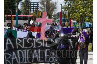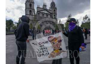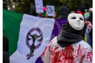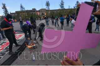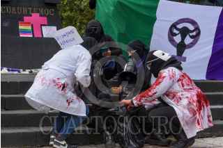 TOLUCA, ESTADO DE MÉXICO, 25NOVIEMBRE2022.- Colectivas feministas Radicales de Toluca salieron a las calles de la capital mexiquense en el marco del Día Internacional de la Eliminación de la Violencia contra la Mujer, realizaron un performance sobre la violencia obstétrica que sufren las mujeres en clínicas públicas no sólo del Estado de México si no de toda la República Mexicana. FOTO: CRISANTA ESPINOSA AGUILAR /CUARTOSCURO.COM