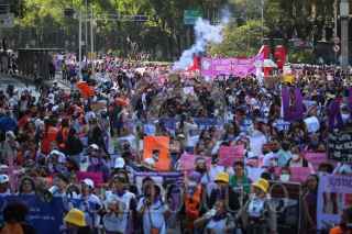 CIUDAD DE MÉXICO, 25NOVIEMBRE2022.- Madres de víctimas de feminicidio, sobrevivientes, colectivas feministas, mujeres y niñas, marcharon desde la Glorieta de Colon (autonombrada como Glorieta de Mujeres que luchan ) hacía el Zócalo capitalino para exigir empatía y justicia para los casos de feminicidio y violencia de género. FOTO: ANDREA MURCIA /CUARTOSCURO.COM