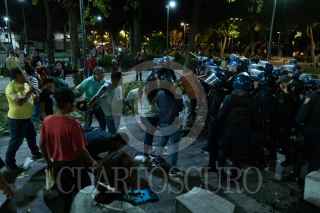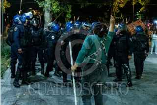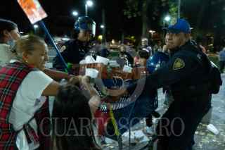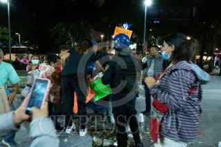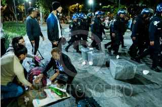 CIUDAD DE MÉXICO, 26NOVIEMBRE2022.- Un operativo por parte de elementos de la Secretaria de Seguridad Ciudadana para retirar puestos ambulantes de las inmediaciones de la Alameda Central, culminó en un enfrentamiento entre los comerciantes y los uniformados. Ambos grupos se arrojaron objetos como: piedras, botellas, tierra, salsas y agua, lo que culminó con un estimado de seis heridos en total. Una señora permaneció en el piso en shock después de que los policías le retiraron su carrito. FOTO: GALO CAÑAS/CUARTOSCURO.COM