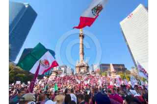 CIUDAD DE MÉXICO, 27NOVIEMBRE2022.- Andrés Manuel López Obrador, Presidente de México, encabezó una marcha por lo que el denominó "cuatro años de la transformación de México". El mandatario arranco en el Ángel de la Independencia rumbo al Zócalo, lo acompañaron Marcelo Ebrard, Adán Augusto López, Claudia Sheinbaum, y su hijo Andrés Manuel López Beltrán. FOTO: MOISÉS PABLO/CUARTOSCURO.COM