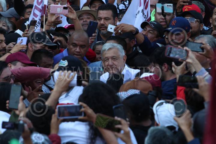 CIUDAD DE MÉXICO, 27NOVIEMBRE2022.- Andrés Manuel López Obrador, presidente de México encabeza marcha hacía el Zócalo donde dará un mensaje a la población. FOTO: ANDREA MURCIA/CUARTSOCURO