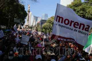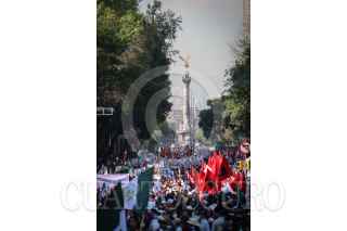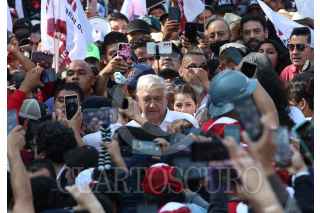 CIUDAD DE MÉXICO, 27NOVIEMBRE2022.- Andrés Manuel López Obrador, presidente de México encabeza marcha hacía el Zócalo donde dará un mensaje a la población. FOTO: ANDREA MURCIA/CUARTSOCURO