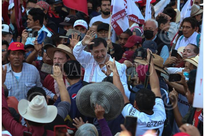 CIUDAD DE MÉXICO, 27NOVIEMBRE2022.- Andrés Manuel López Obrador, presidente de México encabeza marcha hacía el Zócalo donde dará un mensaje a la población. FOTO: ANDREA MURCIA/CUARTSOCURO