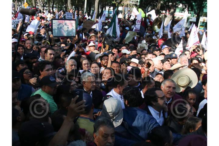CIUDAD DE MÉXICO, 27NOVIEMBRE2022.- Andrés Manuel López Obrador, presidente de México encabeza marcha hacía el Zócalo donde dará un mensaje a la población. FOTO: ANDREA MURCIA/CUARTSOCURO