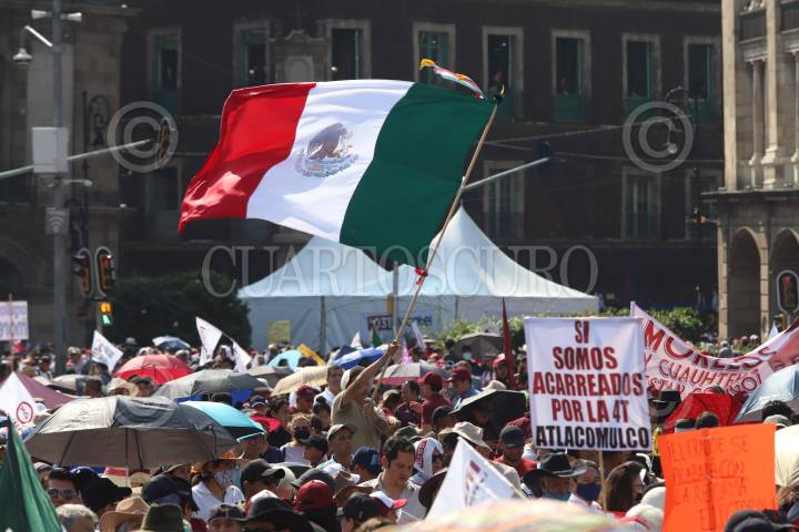 CIUDAD DE MÉXICO, 27NOVIEMBRE2022.- El presidente Andrés Manuel López Obrador da su Informe de Gobierno a casi 4 años de la llamada “Cuarta Transformación”, después de encabezar la marcha que partió del Ángel de la Independencia al Zócalo capitalino. FOTO: EDGAR NEGRETE/CUARTOSCURO.COM