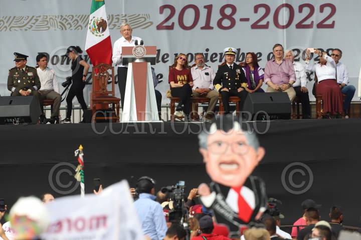 CIUDAD DE MÉXICO, 27NOVIEMBRE2022.- El presidente Andrés Manuel López Obrador da su Informe de Gobierno a casi 4 años de la llamada “Cuarta Transformación”, después de encabezar la marcha que partió del Ángel de la Independencia al Zócalo capitalino. FOTO: EDGAR NEGRETE/CUARTOSCURO.COM
