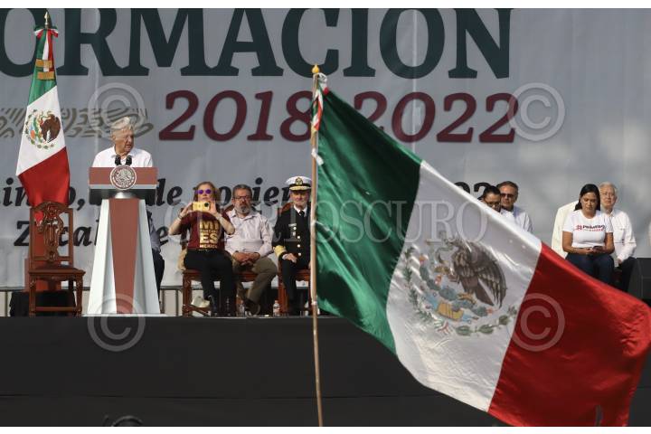 CIUDAD DE MÉXICO, 27NOVIEMBRE2022.- El presidente Andrés Manuel López Obrador da su Informe de Gobierno a casi 4 años de la llamada “Cuarta Transformación”, después de encabezar la marcha que partió del Ángel de la Independencia al Zócalo capitalino. FOTO: EDGAR NEGRETE/CUARTOSCURO.COM