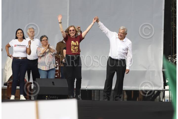 CIUDAD DE MÉXICO, 27NOVIEMBRE2022.- El presidente Andrés Manuel López Obrador da su Informe de Gobierno a casi 4 años de la llamada “Cuarta Transformación”, después de encabezar la marcha que partió del Ángel de la Independencia al Zócalo capitalino. FOTO: EDGAR NEGRETE/CUARTOSCURO.COM
