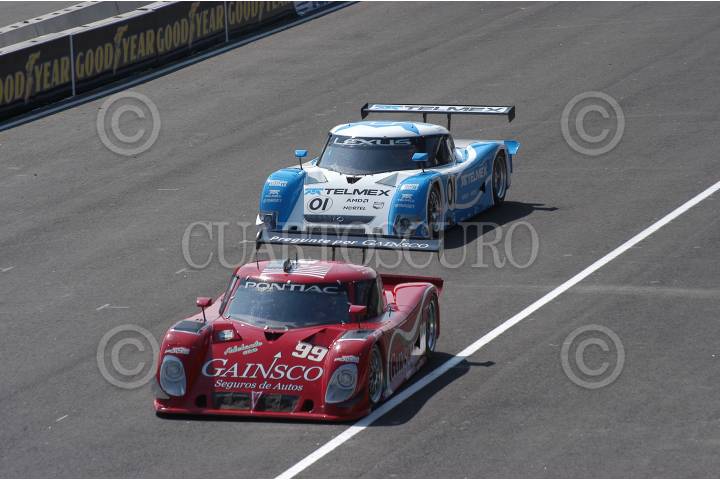 MÉXICO D.F. 03MARZO2007.- El auto numero 99 conducido por Alex Gurney y su coequipero John Fogarty de la escuderia Gainco Bob Sta, al comienzo de la carrera donde sale en tercera posición el auto del mexicano Guillermo Rojas de la escuderia Telmex, durante la celebración de la serie Gran AM que se realizo en el autodromo de los Hermanos Rodríguez. FOTO: GUILLERMO PEREA/CUARTOSCURO.COM