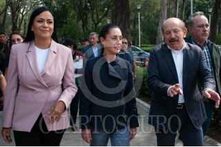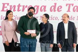 CIUDAD DE MÉXICO, 29NOVIEMBRE2022.- Claudia Sheinbaum, jefa de gobierno de la capital, acompañada de la titular de Bienestar, Ariadna Montiel y por el alcalde de Iztacalco, Armando Quintero, realizó la primera entrega de las tarjetas del bienestar a personas que padezcan alguna discapacidad, la mandataria local destacó la estrategia del gobierno federal por el apoyo a estos sectores de la sociedad. FOTO: DANIEL AUGUSTO /CUARTOSCURO.COM