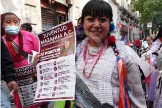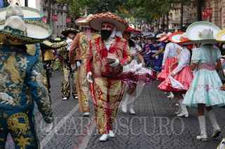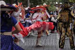 CIUDAD DE MÉXICO, 29NOVIEMBRE2022.- Chinelos realizaron una comparsa en apoyo a las mujeres mazahuas del estado de Toluca, quienes fueron recibidas por la jefa de gobierno Claudia Sheinbaum y en agradecimiento acudieron a las calles del Centro Histórico rumbo al Zócalo capitalino. FOto: GRACIELA LÓPEZ/CUARTOSCURO COM