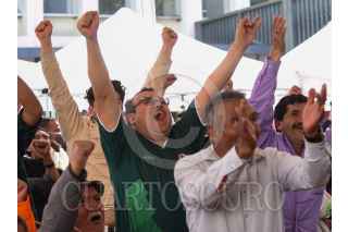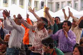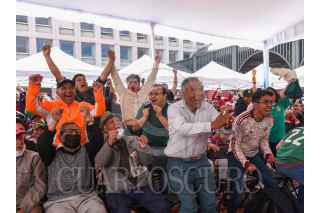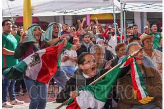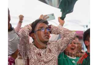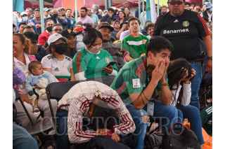 TOLUCA, ESTADO DE MÉXICO, 30NOVIEMBRE2022.- Alegría, euforia, sufrimiento y tristeza vivieron los aficionados al fútbol durante el partido de México ante Arabia Saudita durante el Mundial de Qatar 2022, tratando de conseguir su pase para octavos en el grupo C, a pesar del triunfo de la Selección Mexicana no bastó para pasar, esto durante la transmisión en la pantalla instalada en la Plaza Fray Andrés de Castro en Toluca. FOTO: CRISANTA ESPINOSA AGUILAR /CUARTOSCURO.COM