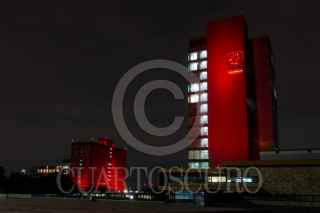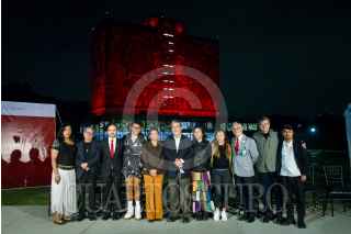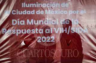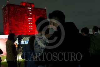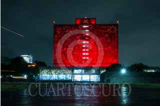 CIUDAD DE MÉXICO, 30NOVIEMBRE2022.- Samuel Ponce de León, Coordinador del Programa Universitario de Investigación en Salud y Oliva López, secretaria de salud de la ciudad encabezaron la Iluminación de la Torre Rectoría y de la Biblioteca Central de Ciudad Universitaria en el marco de la conmemoración del Día Mundial de la Respuesta al VIH/SIDA. FOTO: ROGELIO MORALES /CUARTOSCURO.COM