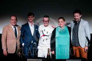 CIUDAD DE MÉXICO, 01DICIEMBRE2022.- Nicolas Alvarado, promotor cultural y encargado de la incubadora de guión de Moët & Chandon; Carlos Pechieu, director general de Moët Hennesy México; El cineasta Manolo Caro, embajador de Moët & Chandon; Estrella Araiza, directora del Festival Internacional de Cine de Guadalajara, y Raúl Echeverría, profesor del DIS (Escuela de Cine de la Universidad Autónoma de Guadalajara), encabezaron la conferencia de prensa y presentación de los proyectos ganadores de la incubadora de cine Toast for a Cause 2022. Este año, los proyectos seleccionados fueron Inés de David Liles, Júbilo de Lina Lasso y La maquinista de Omar Gómez y Sophia Barba. FOTO: GALO CAÑAS/CUARTOSCURO.COM