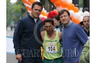 MEXICO, D.F. 04MARZO2007.- Benjamin Pardes ganador del primer lugar de la carrera de 10 kilometros, se toma una fotografia con Carlos Hermosillo titular de la CONADE y el presidente del consejo de la comunicación al termino de la competencia. FOTO: NELLY SALAS/CUARTOSCURO.COM
