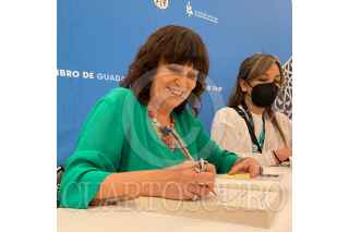 GUADALAJARA, JALISCO, 02DICIEMBRE2022.- La escritora española Rosa Montero, acompañada del periodista Carlos Puig, presentó su libro más reciente “El peligro de estar cuerda”, durante la FIL Guadalajara. En una plática conmovedora y amena, la autora dijo que está sorprendida por la respuesta “interactiva” que ha generado esta obra: “Los lectores y yo hemos llorado mucho con este libro”, el cual aborda la no existencia de la “normalidad” y aboga de manera literaria por una mayor apertura y comprensión de los llamados trastornos mentales, porque no es raro ser raro. Luego de la presentación, firmó libros a una larga lista de lectores. FOTO: ANA LUISA ANZA/CUARTOSCURO.COM