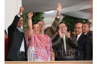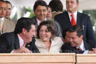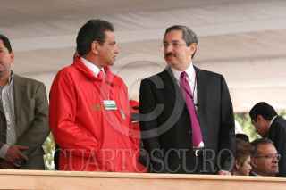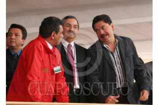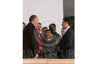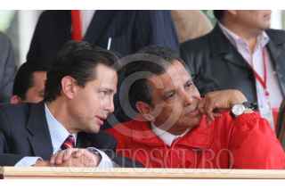 MEXICO, D.F. 04MARZO2007.- Enrique Peña Nieto, gobernador del Estado de México conversa con Fidel Herrera, gobernador de Veracruz durante la toma de protesta de la nueva dirigencia nacional del PRI. FOTO: NELLY SALAS/CUARTOSCURO.COM
