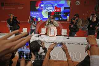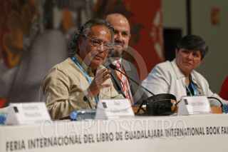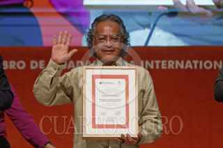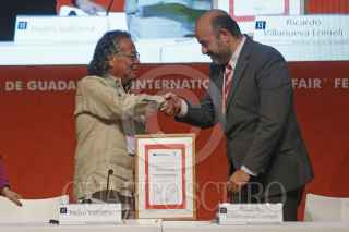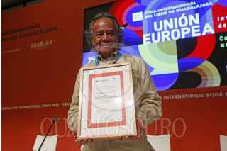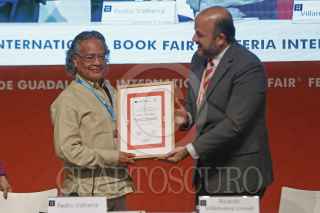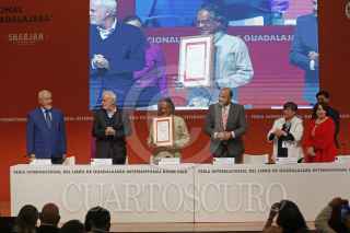 GUADALAJARA, JALISCO, 04DICIEMBREMBRE2022.- Hoy en el salón Juan Rulfo de la Expo, tuvo lugar la entrega del Homenaje Nacional de Periodismo Cultural Fernando Benítez a Pedro Valtierra Fotoperiodista y Director de la Agencia Cuartoscuro, esto durante la edición 36 de la Feria Internacional del Libro de Guadalajara (FIL), en donde el país invitado de honor es Sharjah. FOTO: FERNANDO CARRANZA GARCIA / CUARTOSCURO.COM