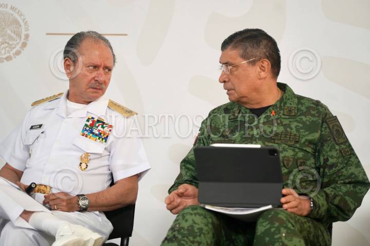 CAMPECHE, CAMPECHE, 05DICIEMBRE2022.- Andrés Manuel López Obrador, Presidente de los Estados Unidos Mexicanos ofreció su conferencia mañanera en Campeche. Lo acompañaron: Layda Sansores San Román, gobernadora de Campeche; Adán Augusto López Hernández, secretario de Gobernación; Rosa Icela Rodríguez Velázquez, secretaria de Seguridad y Protección Ciudadana; José Rafael Ojeda Durán, secretario de Marina; Luis Cresencio Sandoval González, secretario de la Defensa Nacional; Luis Rodríguez Bucio, comandante de la Guardia Nacional y Ricardo Sheffield Padilla, titular de la Procuraduría Federal del Consumidor (Profeco). FOTO: PRESIDENCIA/CUARTOSCURO.COM