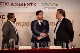 CIUDAD DE MÉXICO, 05DICIEMBRE2022.- La conferencia de prensa "Acciones para la Temporada Invernal 2022-2023", se llevó a cabo en las instalaciones de la Secretaría de Medio Ambiente y Recursos Naturales. Entre otros, esta fue presidida por Victor Hugo Páramo Figueroa, Coordinador Ejecutivo de la Comisión Ambiental de la Megalópolis, Jorge Rescala Pérez, Secretario del Medio Ambiente del Estado de México y Luis Ramírez Hernández, Secretario de Medio Ambiente del Estado de Tlaxcala. FOTO: PEDRO ANZA /CUARTOSCURO.COM