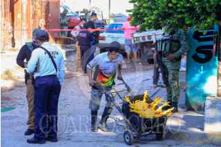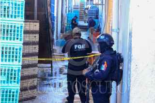 ACAPULCO, GUERRERO, 05DICIEMBRE2022.- Tres hombres resultaron muertos esta mañana, durante el ataque armado a un negocio de venta de pollos en el mercado central de Acapulco, testigos informaron que hombres armados llegaron y disparando contra el negocio alrededor de las 7 de la mañana, en dónde también resultaron heridos varías personas que se trasladaron por sus medios a hospitales. FOTO: CARLOS ALBERTO CARBAJAL/CUARTOSCURO.COM