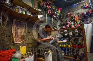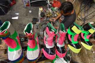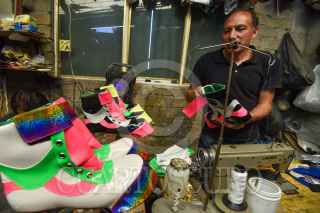 SAN MATEO ATENCO, ESTADO DE MÉXICO, 05DICIEMBRE2022.- El próximo 10 de diciembre se celebra el Día Nacional del Payaso en México y algo que los caracteriza no solo es su maquillaje y vestuario, si no sus enormes zapatos, los cuales batallan para conseguirlos por el tamaño de los mismos, ante esto José Guadalupe Nuñez zapatero de San Mateo Atenco y también payaso, inició hace poco más de 16 años a elaborar calzado de payaso en su taller. Colores vibrantes, personalizados, para payasos de todas las edades es algo que ha caracterizado su trabajo; su calzado lo manda a varios puntos de la República Mexicana, Estados Unidos, Canadá, Argentina y Centroamérica. Durante la pandemia por COVID-19 su actividad disminuyó considerablemente. Este jueves 8 de diciembre los payasos saldrán a las calles de Toluca a celebrar su día. FOTO: CRISANTA ESPINOSA AGUILAR /CUARTOSCURO.COM
