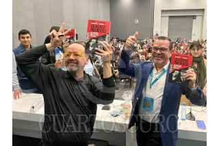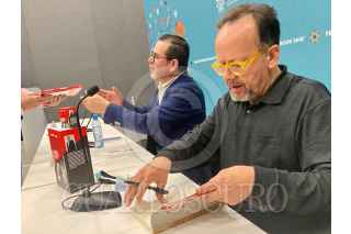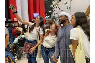 GUADALAJARA, JALISCO, 02DICIEMBRE2022.- Asistentes a la Feria Internacional de Libro de Guadalajara se toman una “selfie” con uno de los integrantes del pabellón de invitados este año: Sharjah y la cultura árabe. FOTO: ANA LUISA ANZA/CUARTOSCURO.COM