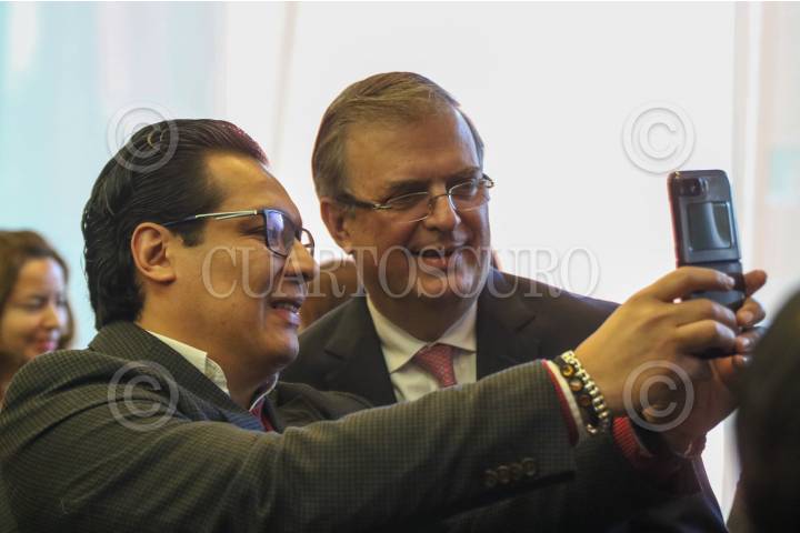 CIUDAD DE MÉXICO, 06DICIEMBRE2022.- Marcelo Ebrard, secretario de Relaciones Exteriores; Roberto Velasco, Jefe de la Unidad para América del Norte de la SRE; y Juan Sabines, cónsul de México en Orlando, encabezaron la firma de convenio entre la SRE y el IMSS, que les permitirá a los paisanos en Estados Unidos incorporarse al Seguro Social y asegurar a sus allegados en México. FOTO: MOISÉS PABLO/CUARTOSCURO.COM