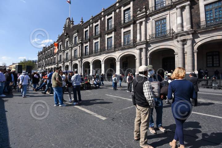 TOLUCA, ESTADO DE MÉXICO, 06DICIEMBRE2022.- Habitantes de Nezahualcóyotl instalaron un plantón frente a Palacio de Gobierno en Toluca encabezados por el presidente municipal Adolfo Cerqueda Rebollo y Juan Hugo de la Rosa ex alcalde de este municipio exigiendo un presupuesto equitativo y justo para Neza. FOTO: CRISANTA ESPINOSA AGUILAR /CUARTOSCURO.COM