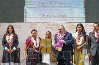 TOLUCA, ESTADO DE MÉXICO, 06DICIEMBRE2022.- Rigoberta Menchú Premio Nobel de la Paz 1992 durante la presentación de resultados de consulta a pueblos originarios para incorporar la Sala de Asuntos Indígenas al Poder Judicial del Estado de México, el evento estuvo encabezado por Ricardo Sodi Cuellar Presidente del TSJEM. FOTO: CRISANTA ESPINOSA AGUILAR /CUARTOSCURO.COM