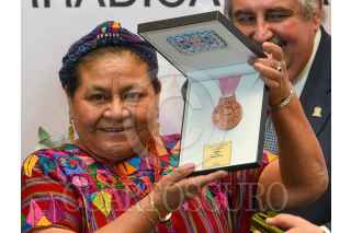 TOLUCA, ESTADO DE MÉXICO, 06DICIEMBRE2022.- Rigoberta Menchú Tum Premio Nobel de la Paz recibió un reconocimiento por su activismo y defensa de la Paz, justicia social y derechos humanos de los pueblos indígenas durante la Trigésima Primera Sesión Ordinaria del Sistema Estatal para la Igualdad de Trato y Oportunidad entre Mujeres y Hombres encabezada por Martha Hilda González Calderón titular de la Secretaría de las Mujeres. FOTO: CRISANTA ESPINOSA AGUILAR /CUARTOSCURO.COM