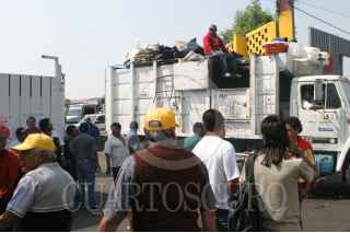 MÉXICO, D.F. 05MARZO2007.- Trabajadores de limpia paran labores frente a la sección uno de reciclaje de basura ubicado en la callle Agustin Lara y el eje 3 sur en la delegación Venustiano Carranza, para exigir mejores camiones, equipo y apoyo economico para trabajadores. FOTO: SAÚL LÓPEZ ESCORCIA/CUARTOSCURO.COM