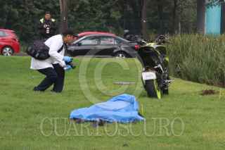 CIUDAD DE MÉXICO, 09DICIEMBRE2022.- Muere un motociclista al derrapar y chocar contra un árbol en Cuemanco. FOTO: ROGELIO MORALES/CUARTOSCURO.COM