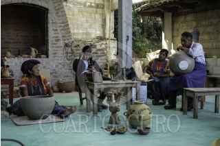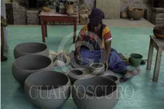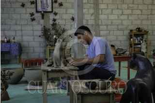 AMATENANGO DEL VALLE, CHIAPAS, 11DICIEMBRE2022.- Por generaciones, la familia López ha resguardado la tradición regional sobre la elaboración de vasijas y artesanías de barro. Juan, un miembro de la generación más jóven de la familia, al igual que sus hermanas, ha sido ganador en concursos a nivel estatal y nacional. Valorando la creación tradicional de estas artesanías, Juan ha investigado cómo incluir materiales orgánicos locales más duraderos y ha puesto en marcha proyectos de enseñanza en su oficio a personas extranjeras y niños de su comunidad. Durante su crecimiento en el mundo del barro decidió, junto con su familia, construir un horno estilo japonés que les permitiera, a diferencia de los hornos al aire libre, coser piezas continuando con el legado artesanal de los hornos de leña y protegiendo la salud de su familia. Además, como asegura Juan, esto contribuye al resguardo de su cultura. A las cinco de la mañana, Juan y sus tres hermanos, así como sus padres Agustina y Bonifacio, inician las labores preparando la mezcla del barro y la arcilla recolectados a unos kilómetros de su taller, ubicado sobre la carretera Teopisca - Comitán. Una vez que la mezcla está lista, cada uno inicia con sus especialidades: esculpir jaguares, pulir piezas o formar vasijas a mano. Aproximadamente una vez al mes el horno se prende para el proceso de cocción, en sus adentros de altas temperaturas se ingresan las piezas que después saldrán firmes y se pondrán a la venta en su local comercial a la orilla de carretera o se entregarán a aquellos clientes que las han pedido con antelación y a la medida. FOTO: ISABEL MATEOS /CUARTOSCURO.COM