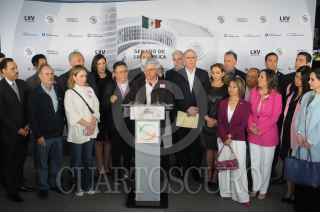CIUDAD DE MÉXICO, 13DICIEMBRE2022.- Asociaciones civiles ingresaron al Senado de la República luego de mantenerse protestando afuera previo a la discusión de la ley electoral en la Cámara Alta. Encabezados por Claudio X. González y acompañados de senadores, exigieron a los legisladores votar en contra de la Reforma. FOTO: DANIEL AUGUSTO /CUARTOSCURO.COM