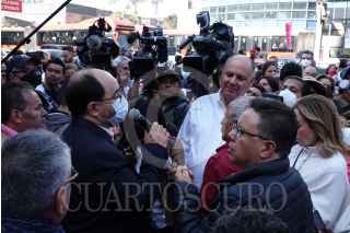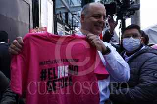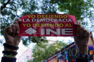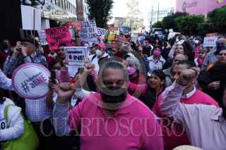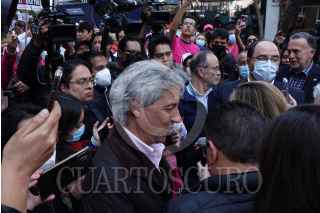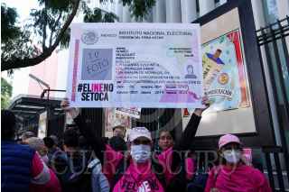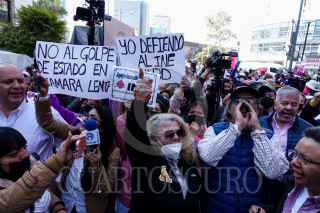CIUDAD DE MÉXICO, 13DICIEMBRE2022.- Un contingente en defensa del Instituto Nacional Electoral (INE) convocado por los empresarios Claudia X González, Gustavo de Hoyos Walter, así como los senadores del Partido Acción Nacional (PAN) y del Grupo Plural, se concentraron en las afueras del Senado de la República (que se encontraba acordonado) para protestar contra la discusión de la reforma secundaria en materia electoral. FOTO: GALO CAÑAS/CUARTOSCURO.COM