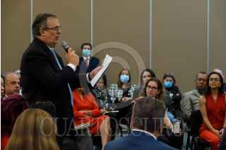 CIUDAD DE MÉXICO, 13DICIEMBRE2022.- Marcelo Ebrard, secretario de Relaciones Exteriores, en compañía de Roberto Velasco, jefe de la Unidad para América del Norte, Luis Gutiérrez Reyes, titular del Instituto de los Mexicanos en el Exterior, así como empresarios, empresarios y representantes de la comunidad mexicana en el exterior, presenciaron la presentación del Plan de Acción para la atención de Comunidades Mexicanas Residentes en el exterior 2022- 2024. FOTO: GALO CAÑAS/CUARTOSCURO.COM