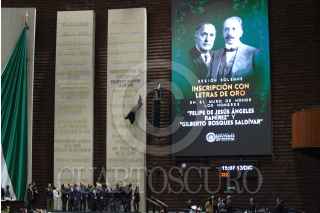CIUDAD DE MÉXICO, 13DICIEMBRE2022.- Sesión solemne de la Cámara Diputados en la que se realizó el acto formal de develación de las Letras de Oro de: Felipe Ángeles y Gilberto Bosques, en el Muro de Honor del Salón de Sesiones. FOTO: MARIO JASSO/CUARTOSCURO.COM