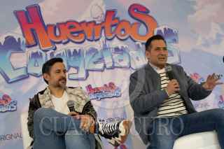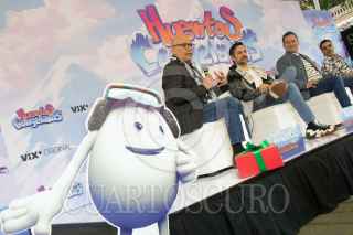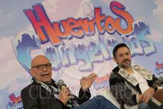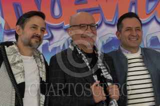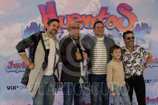 CIUDAD DE MÉXICO, 13DICIEMBRE2022.- Gabriel Riva Palacio, Mauricio Castillo, Rodolfo Riva Palacio, Carlos Espejel y su hijo Fausto Emiliano Espejel Azuara, ofrecieron conferencia de prensa para dar detalles de la película animada "Huevitos Congelados", la cual será la última de la saga. FOTO: MOISÉS PABLO/CUARTOSCURO.COM